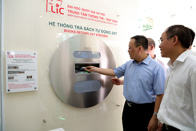 On 27/9/2016, the Library Information Center, Vietnam National University Hanoi (VNU – LIC) has launched the system of the automatic Book Drop 24/7. The investment has been realized under the Project named “Building a digital library generation 2.0 for pinnacle research and training activities in Vietnam National University Hanoi”.